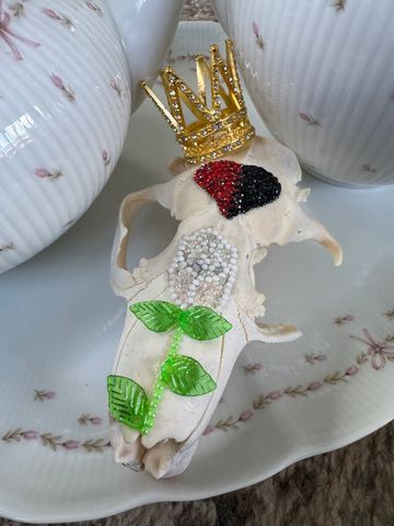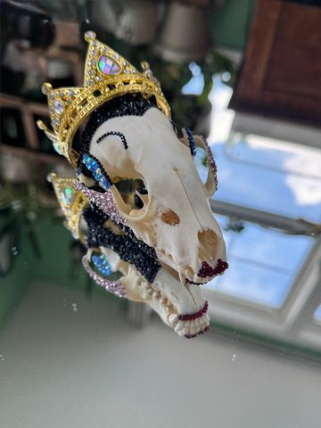 Inspired by the original Disney bad girl, this raccoon skull pays homage to her Royal Majesty, the Evil Queen.